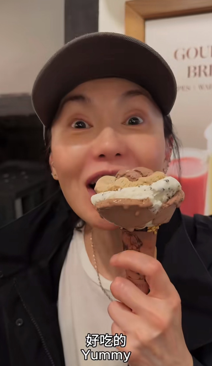 张曼玉还晒出了自己吃东西的视频,她钟爱甜品,所以只能花更多的时间来运动。已经是年过半百,但是看到冰淇淋,张曼玉还是非常的兴奋。