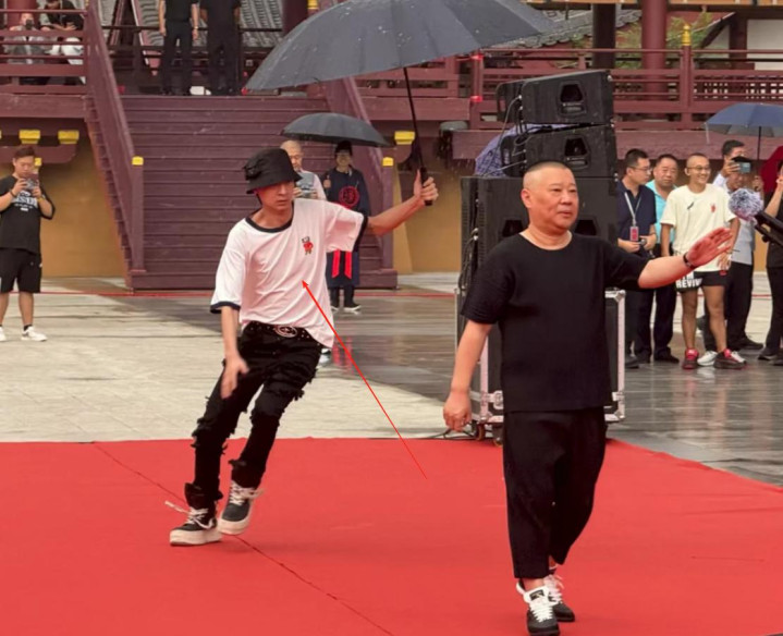 或许是师父郭德纲的“偏爱”太过于明目张胆了,这小子也开始皮起来了,郭德纲前面正走着红毯呢,这小子不老老实实给师父打伞,反而在后面扭来扭去。