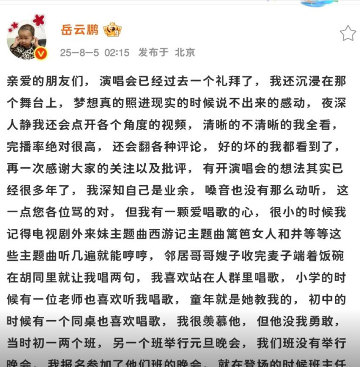 面对这些争议,岳云鹏并没有选择逃避,而是在社交媒体上发长文回应,他感谢了粉丝的支持和批评,也表达了自己对唱歌的热爱和坚持。