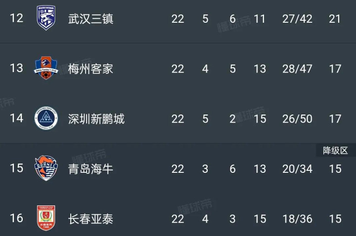 这一场输球,让武汉三镇的保级形势立马紧张了起来!
