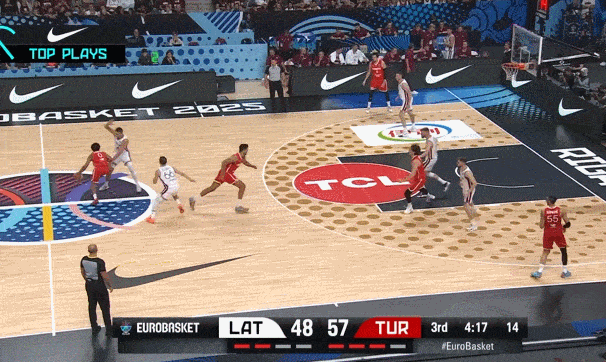 欧锦赛小组赛,土耳其93-73大胜拉脱维亚。