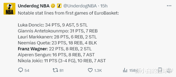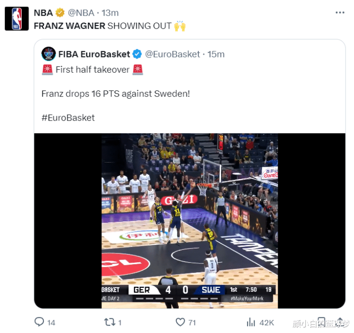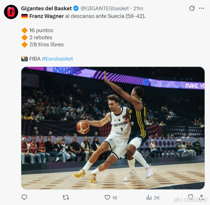 欧洲记者卢卡斯:看起来小瓦格纳很享受FIBA的比赛,他将进入欧洲前三之列,德国也将站上领奖台。