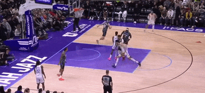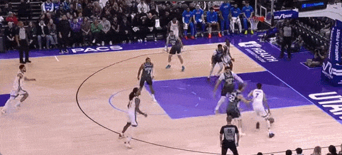 我觉得这个球会让很多人对切特的能力有新的看法 突破进内线隔着一堆防守人 在空中滞空一下后 传给45度的空位