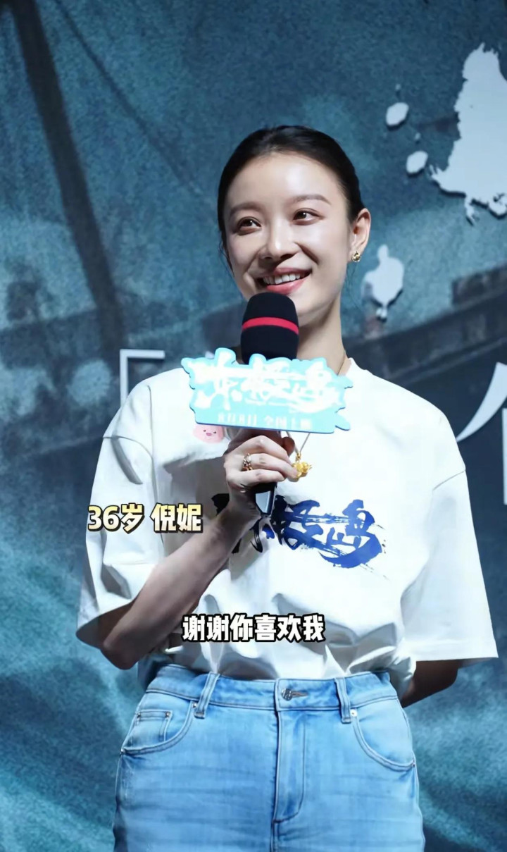 8月5日,电影《东极岛》首映礼活动,36岁的倪妮身穿白色短袖,牛仔裤搭配小白鞋,好迷人!