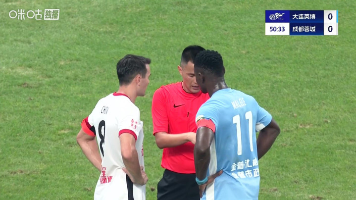 本场首发方面,成都蓉城进行了适度的轮换,三名外援登场,罗慕洛替补待命。大连英博则四外援首发,夏窗新援毕津浩登场。上半场开场之后,大连英博的犀利反击便创造出不少机会,第15分钟佩尼亚单刀球入禁区,但最后的传球在成都蓉城回防球员干扰下最终被门将没收。