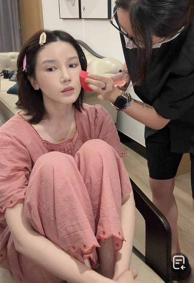 陈小纭直播时请了专业的化妆师为她化妆,两人合作多年,知道什么妆容适合她,明星请的化妆师贵也是有道理的,化妆前化妆后完全是两张脸。