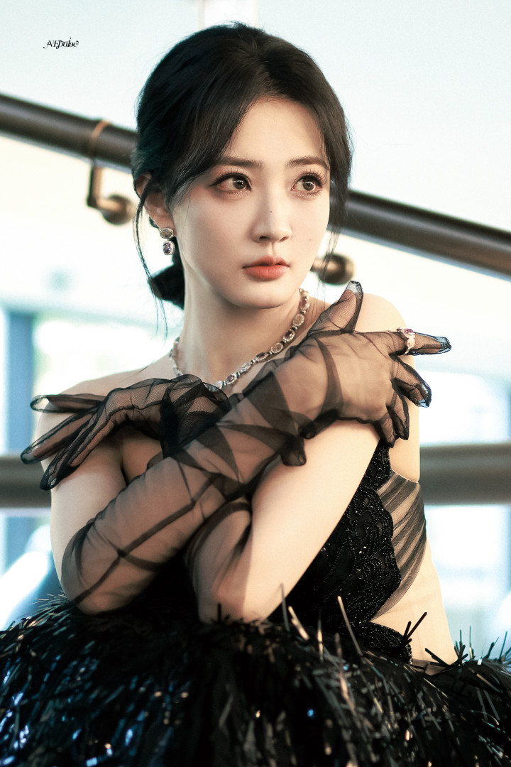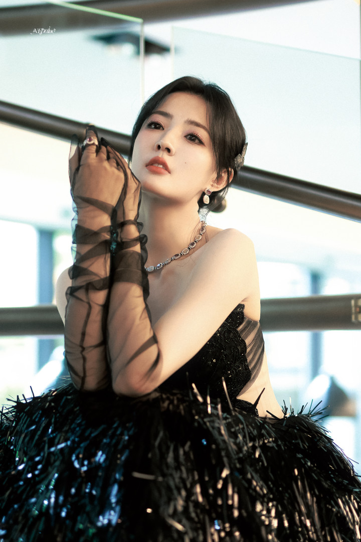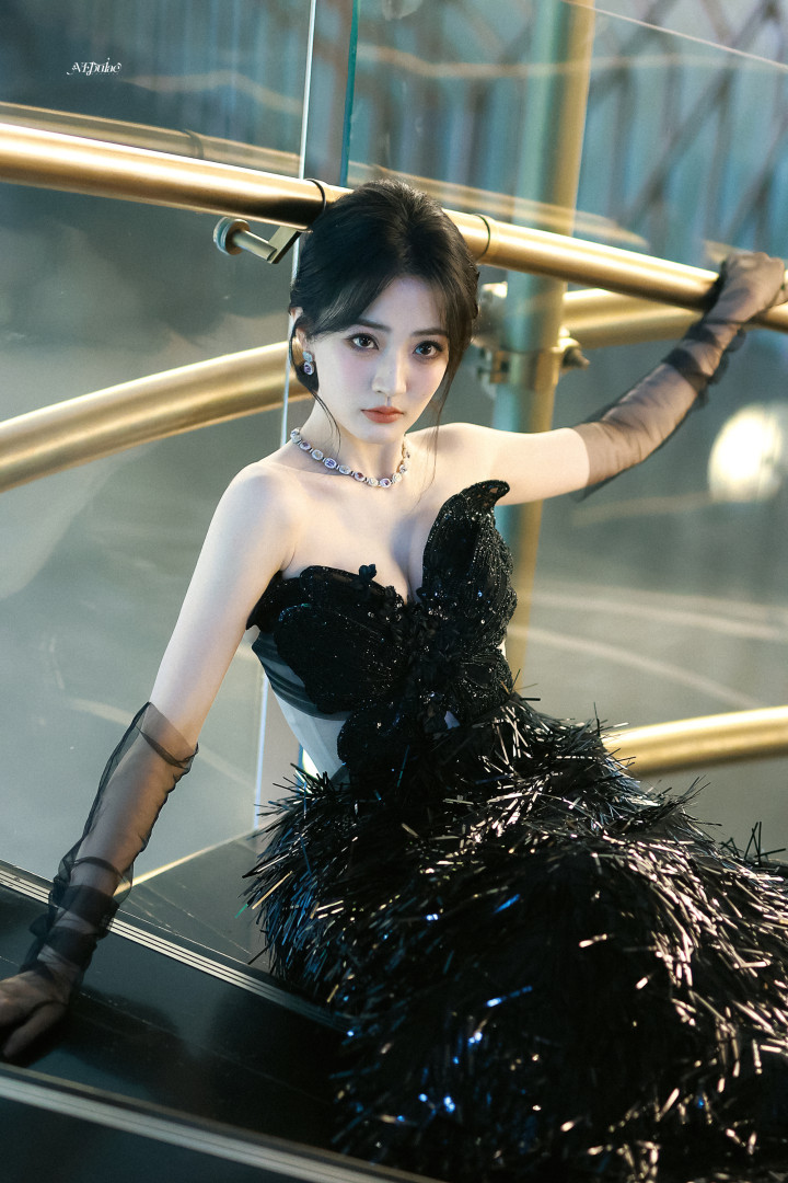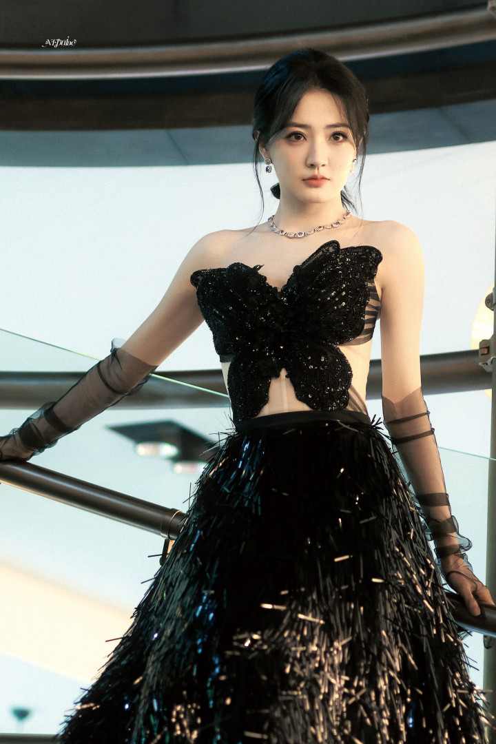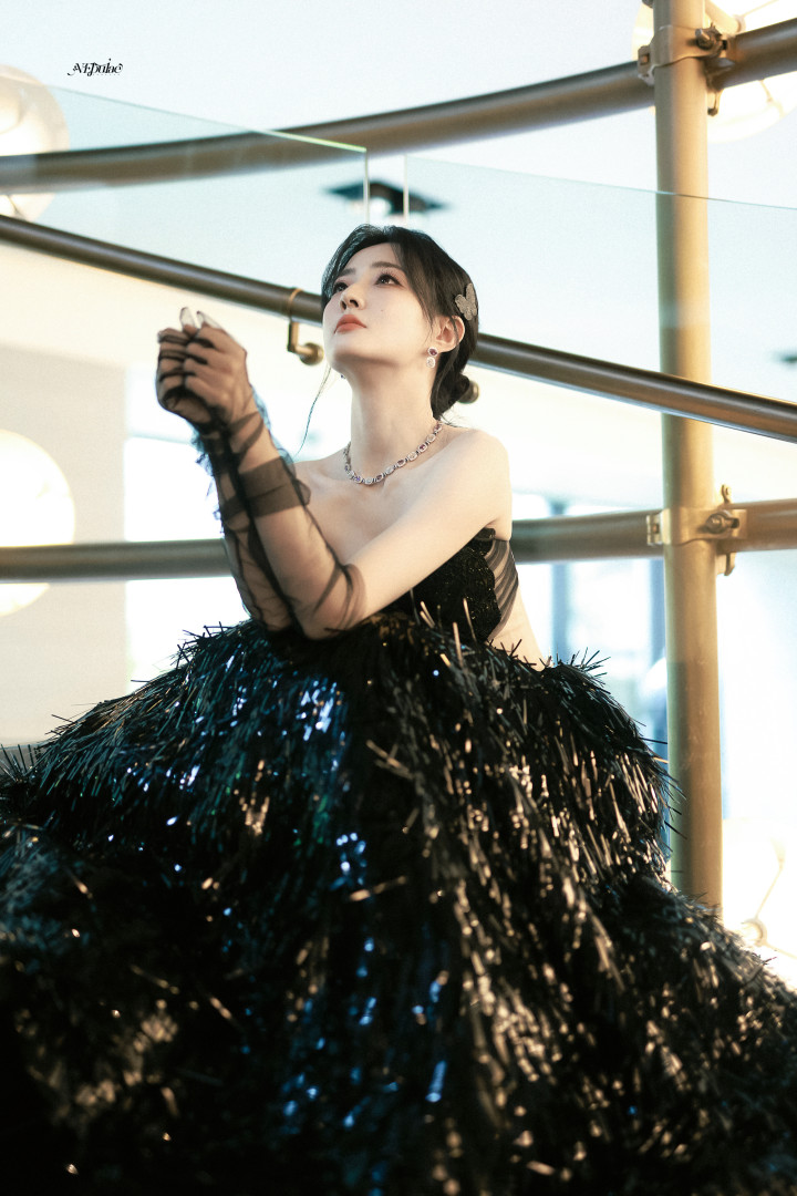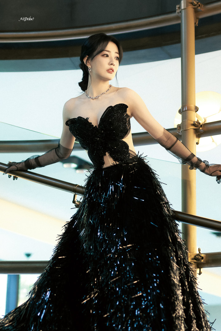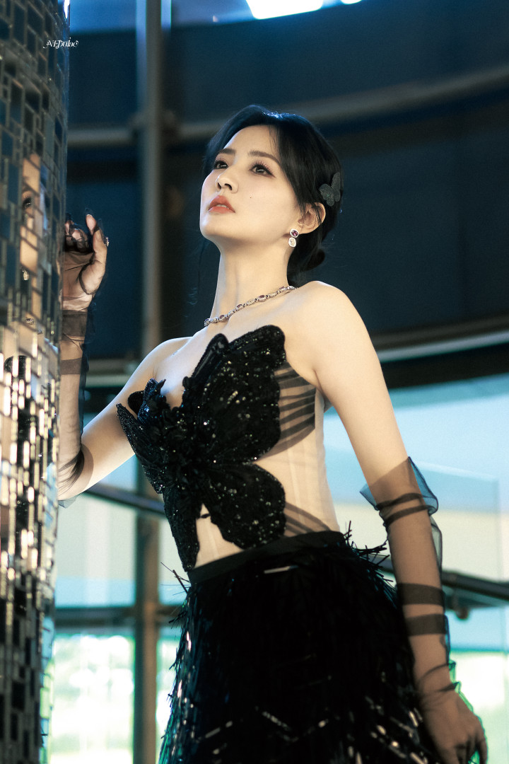 徐璐身穿抹胸长裙礼服秀身材,纤细手臂配网纱手套,若隐若现吸睛!