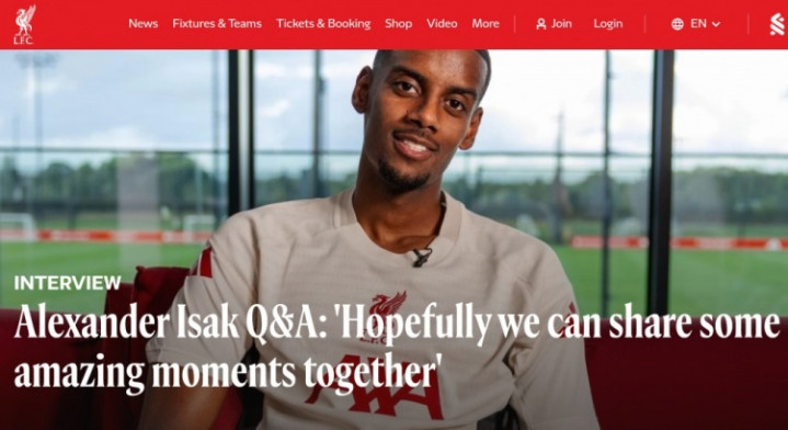 直播吧9月2日讯利物浦已经官宣引进纽卡中锋伊萨克,后者也接受了俱乐部官网的问答采访。