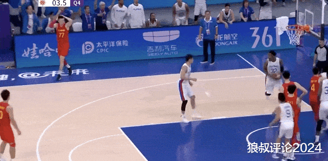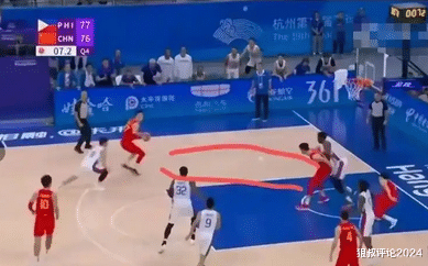 这个回合,胡明轩接到球权后,实际上也具备冲击篮下的时间段,他选择了后撤步3分终结,只是非常遗憾未能命中,对比到23年的亚运会,张镇麟同样是未能命中,这两回合存在非常相似的回合。