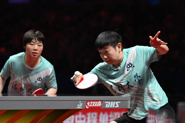 8月30日,深圳大学队组合孙颖莎(右)/蒯曼在比赛中。新华社记者 丁磊 摄