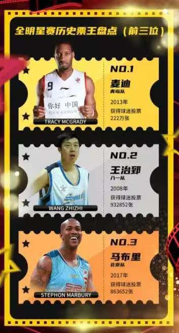 2012-13赛季全明星赛,麦迪以2218388张票数当选CBA全明星票王,这个数字诠释了麦迪的人气,排在麦迪之后的是易建联(1559634张)、马布里(1230561张)。