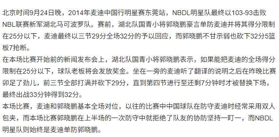 麦迪郭晓鹏热身赛经过,两人对位,同得32分