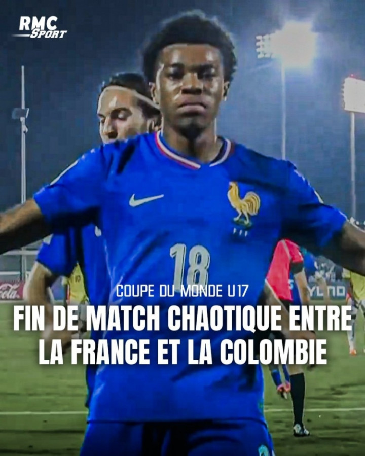 在昨晚进行的U17世界杯1/16决赛,法国U17队2-0战胜哥伦比亚U17队,成功晋级16强。但赛后两队发生冲突,RMC透露,当时一名法国球员在获胜后挑衅哥伦比亚球员,并遭到对手的追打,之后引发双方更大规模的混战。看台上的法国球员的父母和亲属、以及至少一名经纪人也进入球场参与冲突,而安保人员试图控制住所有人。